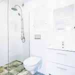 Este apartamento incluye una ducha a ras de suelo y un inodoro separado para tu comodidad.